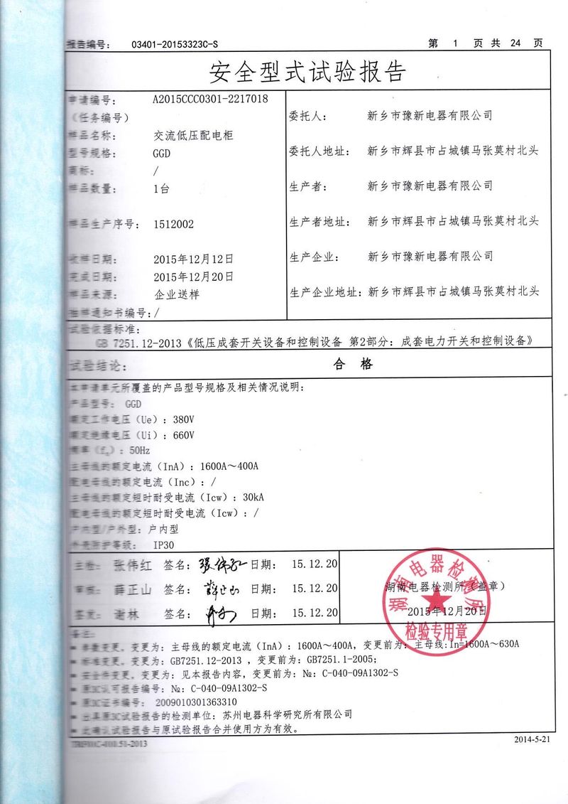 全型式試驗(yàn)報告